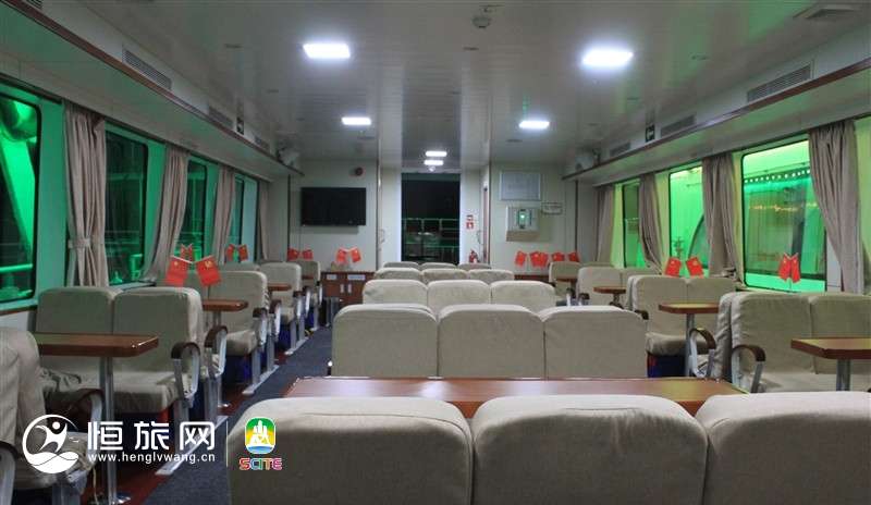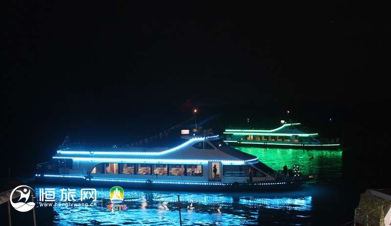 当晚8点,记者跟随游客一起踏上游船,船身周围灯光环绕、船舱内宽敞明亮,装饰一新的游船在夜色中显得分外美丽。