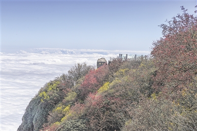 彩林与云海相伴峨眉山秋色宜人