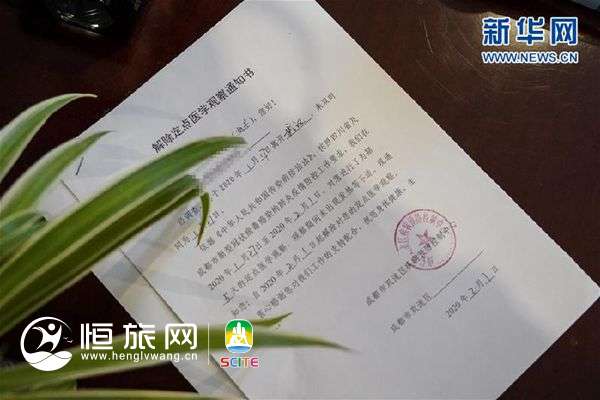 2月1日,一名结束医学观察的武汉滞留旅客得到成都市双流区疾控中心发放的《解除定点医学观察通知书》作为健康证明。新华社记者 张超群 摄