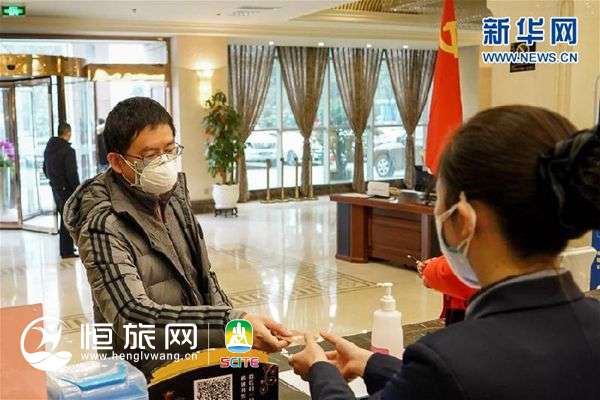 2月1日,在成都市双流区的一家定点服务酒店,一名结束医学观察的旅客办理退房手续。新华社记者 张超群 摄
