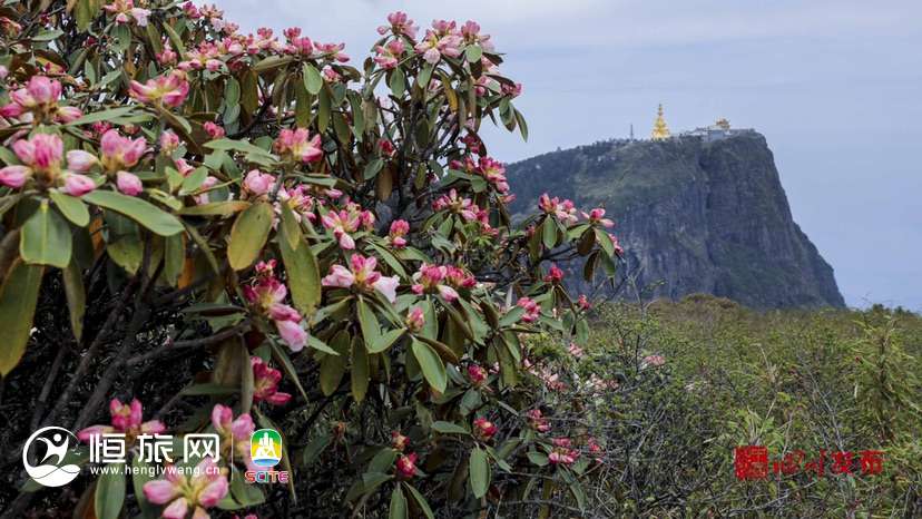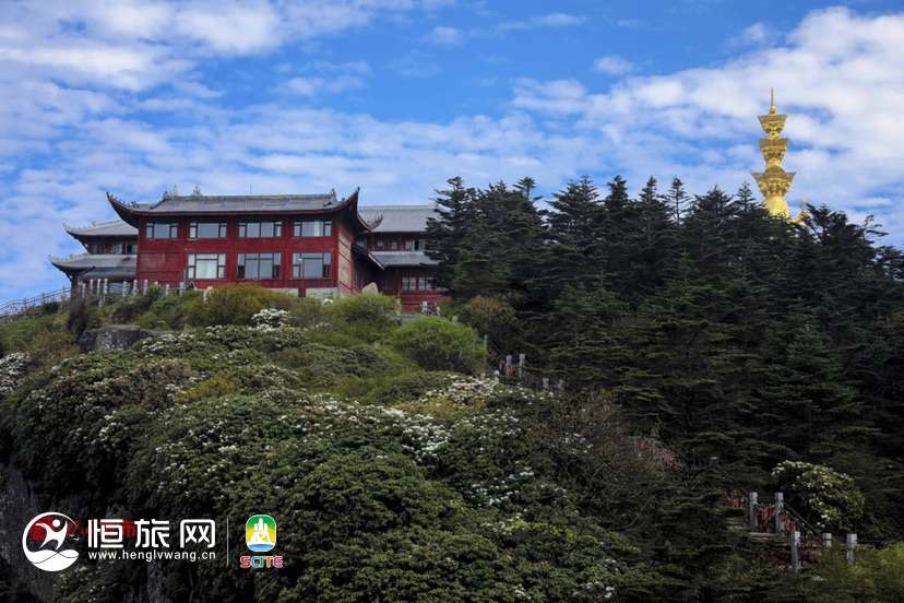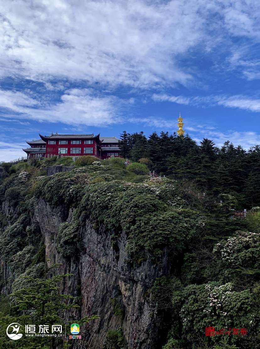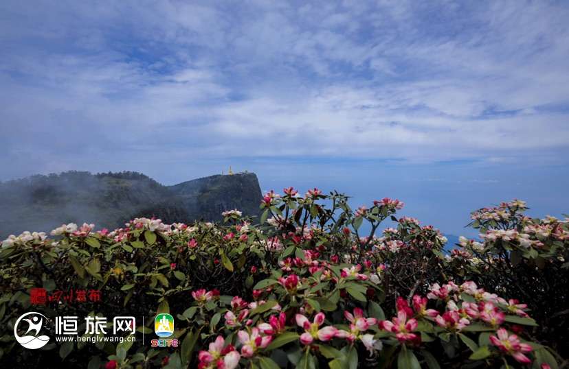 5月23日,记者来到峨眉山金顶等景点,姹紫嫣红的高山杜鹃已花开如画。景区游山步道、摄身崖一带岩破上,各种杜鹃花竞相绽放,与蓝天白云下庄严神圣的十方普贤、金殿等相互印衬,勾勒出一个令人神往的“花海佛国”。