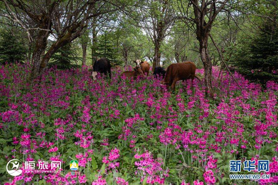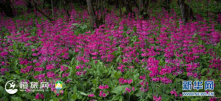 四川省汉源县桌子山上的报春花遍地绽放(5月24日摄)。 新华社记者 江宏景 摄